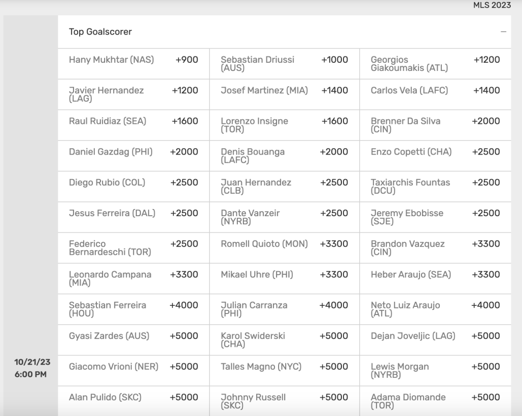 Denis Bouanga – maybe ambitious that I included him as a PK taker for LAFC, but I don’t trust Vela to stay healthy all year and Arango is gone. So, that leaves an opportunity for Bouanga. He was excellent in his first half year (.6xG/90). That xG is just below average (most winners are about .7xG/90) but he only scored once. So, 20-1 is a fair price and buy-low for one of the best attacks in MLS. And my pick to win the Golden Boot this year.