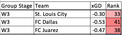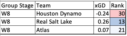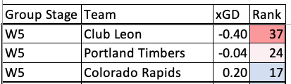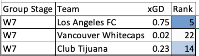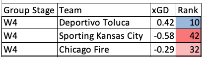 For xG, I used FBRef to get the data from the current MLS season, the Liga MX Apertura (through 4 matches), and Liga MX Clausura. I weighted the Apertura data more despite the lower sample size. Including the Clausura numbers helps establish a baseline for each club and avoids potential small-sample outliers.