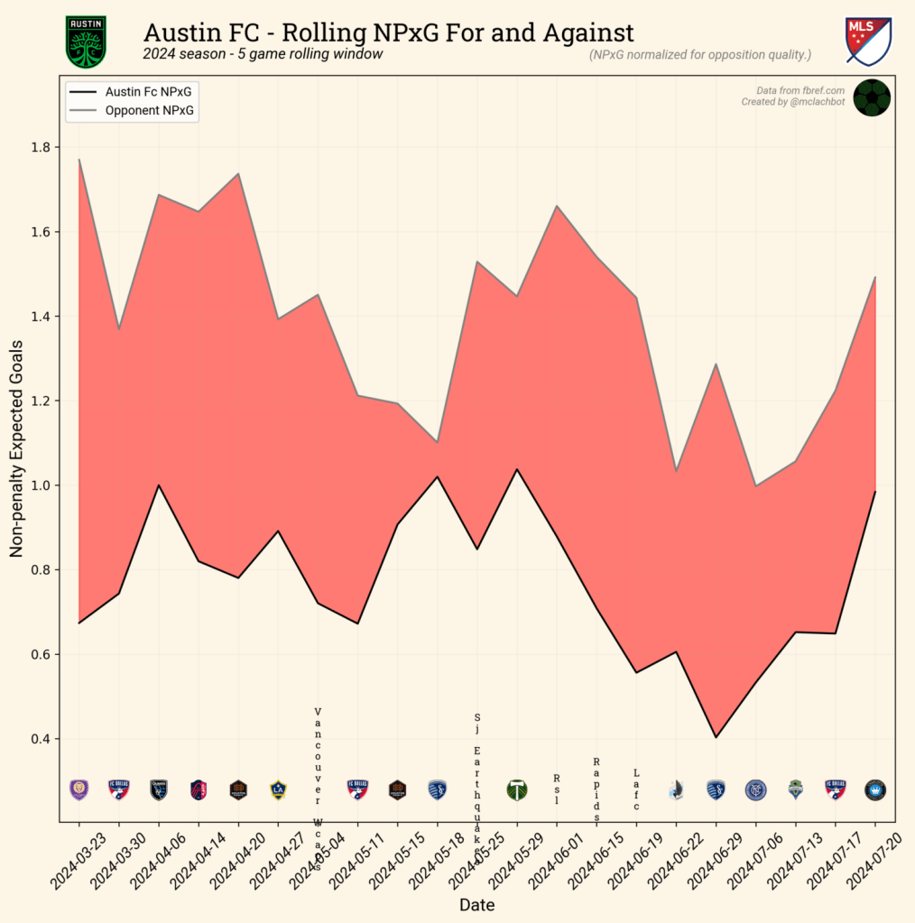 Pumas +170: Austin have been just terrible midway through the 2024 MLS season. They have lost on xG in every single match (25 games played). Josh Wolff’s side have not found that magic that led them to the playoffs in their inaugural season.
